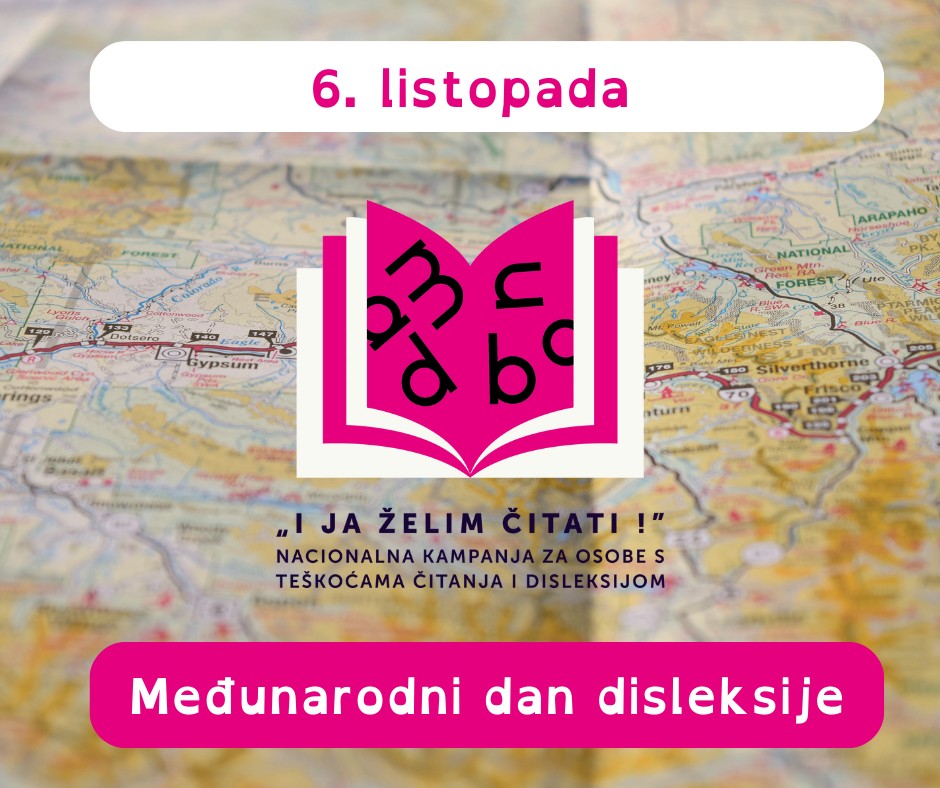 Zato ćemo mjesec listopad u knjižnici posvetiti Nacionalnoj kampanji za osobe s teškoćama čitanja i disleksijom “I ja želim čitati” koju organizira Hrvatsko knjižničarsko društvo (Komisija za knjižnične usluge za osobe s invaliditetom i osobe s posebnim potrebama).