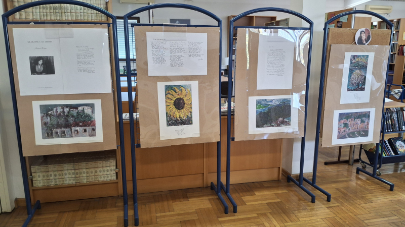 U knjižnici je postavljena izložba Vesninih likovnih i pjesničkih radova iz grafičko-pjesničke mape Slikom i stihom – Vesna Parun. Mapu je uredio Branko Pejnović, Vesnin dugogodišnji prijatelj i inicijator mnogih događanja koja otimaju zaboravu njezino ime.